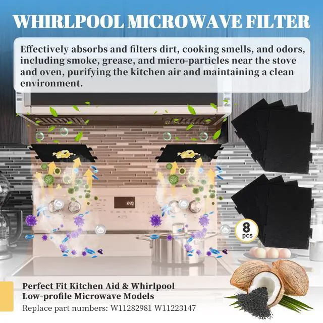COMPATIBILITY: These microwave charcoal filters are a perfect compatibility with Whirlpool microwave models like YKMLS311, WML55011, YWML55011 series, and many others. Replace Part Number W11282981.