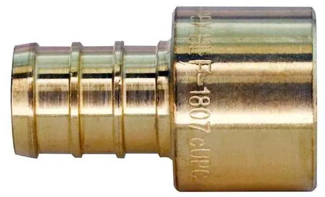 California Proposition 65: This product contains a chemical known to the State of California to cause birth defects or other reproductive harm. The ApolloPEX 1/2 in. Brass PEX Barb x 1/2 in. Female Copper Sweat Adapter (10-Pack) is simple to install and is designed as an economical solution for the transition from copper tubing to PEX tubing. ApolloPEX barb fittings are a key component of the most economical potable water piping systems. Also capable of integration into hydronic heating systems, ApolloPEX sweat adapters can be secured into place using copper crimps, stainless steel pinch clamps or stainless steel crimp sleeves (all sold separately). The ApolloPEX system is a comprehensive piping system comprised of brass fittings, poly alloy fittings, manifolds, valves, fasteners, tools and tubing designed for implementation in water delivery systems, simple or complex.