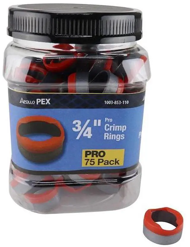 California Proposition 65: This product contains a chemical known to the State of California to cause birth defects or other reproductive harm. The ApolloPEX 3/4 in. Copper Pro Crimp Ring is simple to install and is designed for use with PEX pipe and barb fittings (not included). Made from copper for durability. Pro Crimp Rings feature an end stop that ensures proper placement of the ring on the pipe end. The end stop also prevents the Pro Crimp Ring from sliding or moving on the pipe prior to being secured. Requires a crimping tool (sold separately). ApolloPEX fasteners are a key component of the most economical potable water piping systems. Also capable of integration into hydronic heating systems, ApolloPEX fasteners can be can be used with brass and plastic fittings, valves, and manifolds (all sold separately). The ApolloPEX system is a comprehensive piping system comprised of brass fittings, poly alloy fittings, manifolds, valves, fasteners, tools and tubing designed for implementation in water delivery systems, simple or complex.