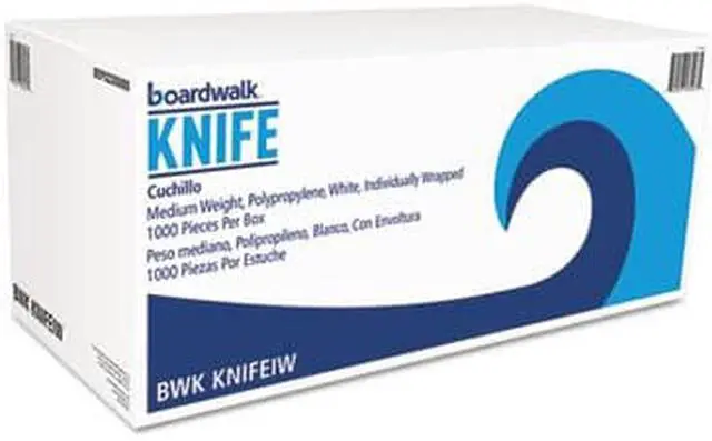 A great option for virtually any dining environment, mediumweight, wrapped polypropylene cutlery items offer quick event set-up or packing for to-go meals. Individually packaged for convenience and to ensure utensils remain sanitary, even after handling. The utensils have the versatility to be used with most cuisines, making them an ideal fit for takeout, concession stands, cafeterias, offices, events, and outdoor gatherings. Utensils Type: Knife; Material(s): Polypropylene; Color(s): White; Grade: Mediumweight.
