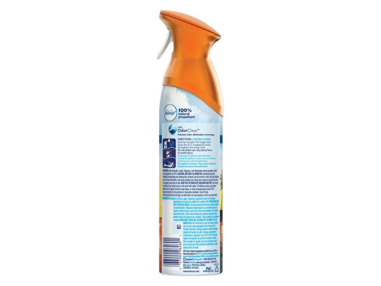 Fights air odors without masking, leaving nothing behind but a light, fresh scent. Helps provide freshness with a 100% natural propellant.