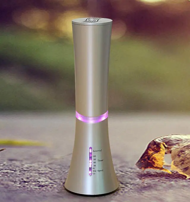 This Carepeutic Aroma Therapy Essential Oil Nebulizer adopts advanced thermostat-controlled mini air pumping technology to vaporize essential oil in its tempered glass tank; it is whisper-quiet and energy efficient; it requires no heat, no water, and can quickly spread out aromas allover much bigger area in just few seconds because it is using air pumping instead of ultrasonic waves for diffusing. Admired and used by most professional aroma therapists, it has the optional preprogrammed interval control usage cycle, 5 minutes on and 8 minutes off and so on until your selected timer is up.