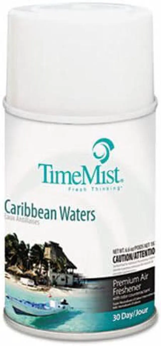 TimeMist Metered Dispenser Fragrance Spray Refill, Spray, 6000 ft³, 6.6 fl oz (0.2 quart), Caribbean Waters, 30 Day, 1 Each