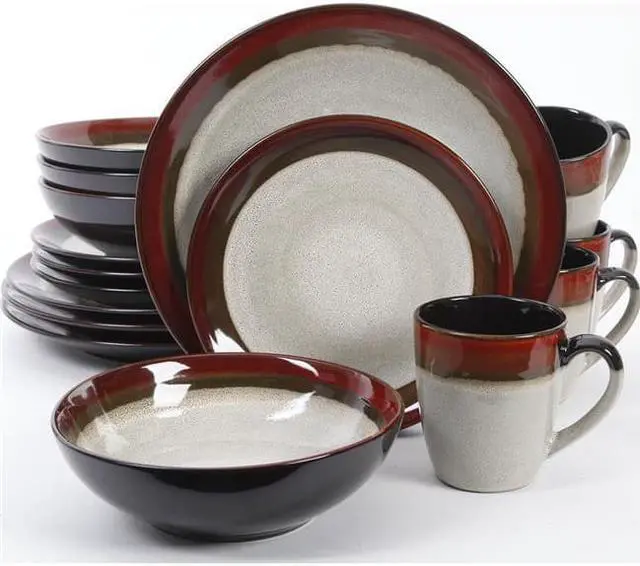Gibson s housewares manufacturing expertise takes material and technique to the next level. Elite collections are perfect for those who appreciate tabletop style statements in their own homes or as beautiful giftware. Found in the world s finest retailers Gibson Elite dinnerware flatware and more represents elegance and fashion leadership that helps to make dinner with friends and family truly memorable occasions. . Features: 16-Piece Round Dinnerware Set Includes 4 each: Dinner Plates Dessert Plates Cereal Bowls & Mugs Microwave & Dishwasher-safe Classic Stoneware Material