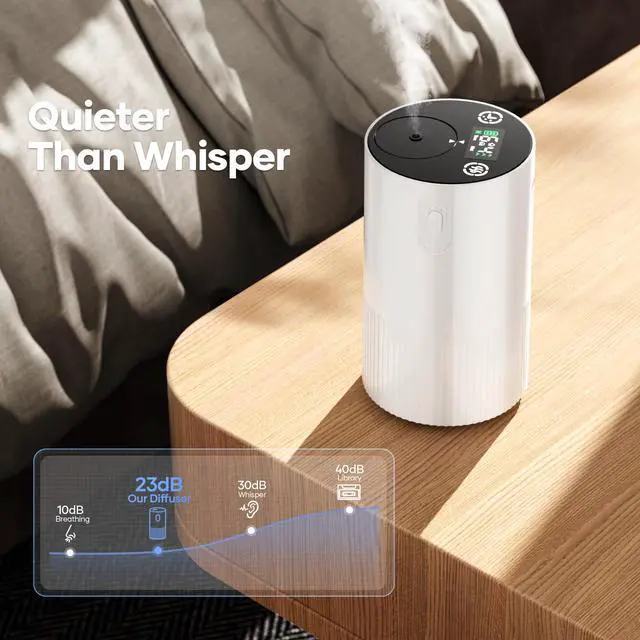 • With an advanced air pump and noiseless design, the mini waterless aroma diffuser is less than 30db!