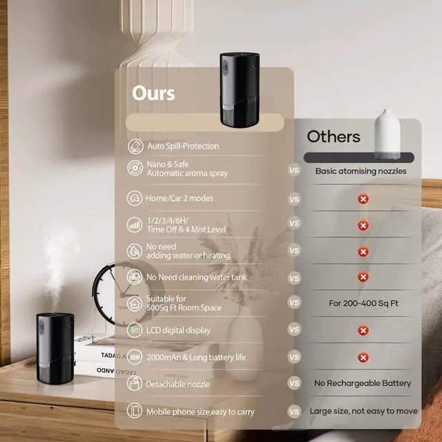 Every time you get in the car, Waterless Aroma Diffuser makes you feel like you're entering a fancy hotel!