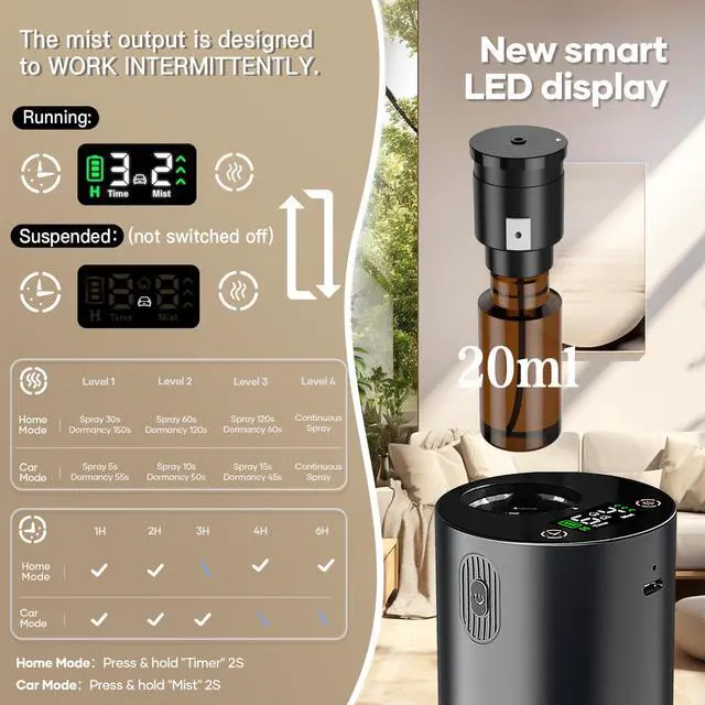 SMART LED DISPLAY & WATERLESS DIFFUSER FOR ESSENTIAL OIL