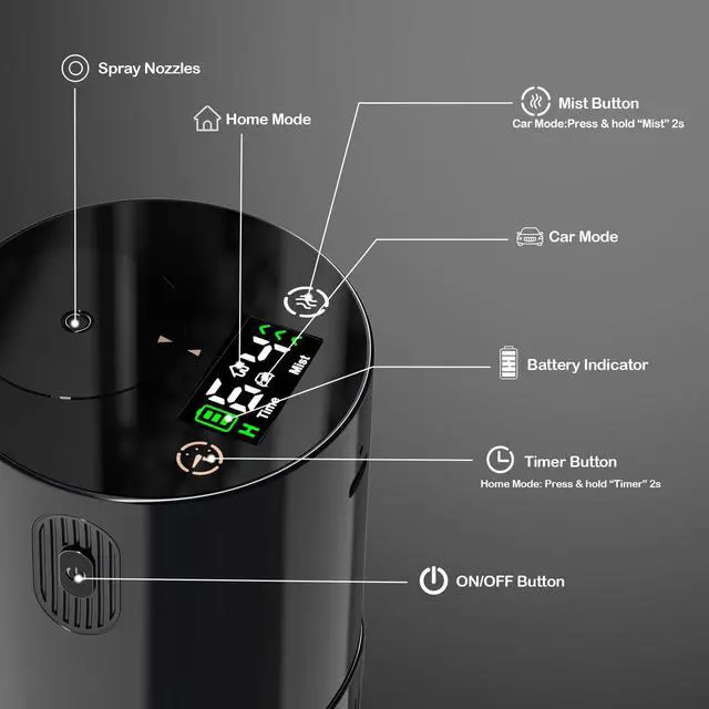 HOME/CAR 2 Modes - 4 Mist Levels & 4 Timer Settings - Working intermittently