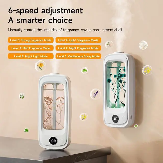 Cordless & Rechargeable for Ultimate Multi-Scene Portability Enjoy the freedom of a cordless diffuser with a built-in rechargeable air freshener battery and smart display. Use it as a powerful diffuser for office or mount it effortlessly as a wall air freshener with the included kit