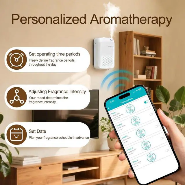 Absolutely. You can adjust intensity, schedule run time, and turn it on/off remotely through the Bluetooth smart app. Set it once and enjoy scenting all week.