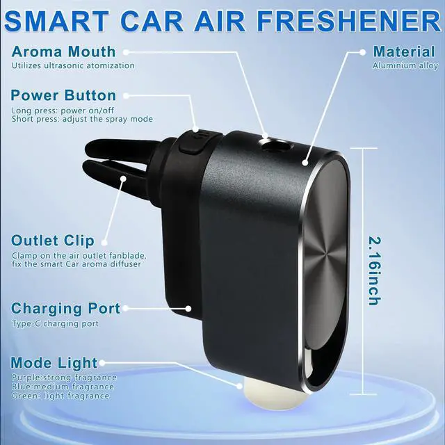 SMART LIFE: smart car air freshener diffuser Equipped with a micro sensor chip, it can sense the start and stop of the car and perform intelligent startup and automatic shutdown. No manual intervention is required. The 220MAH lithium battery provides an ultra-long battery life. After charging for 60 minutes, it can be used for up to 45 days. Provide convenience for your driving life.