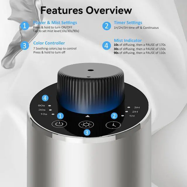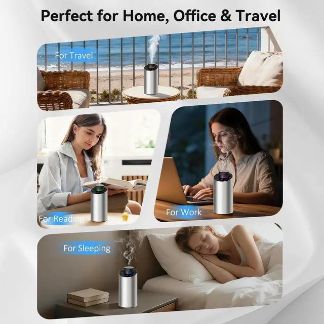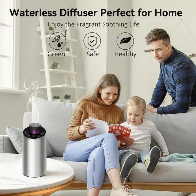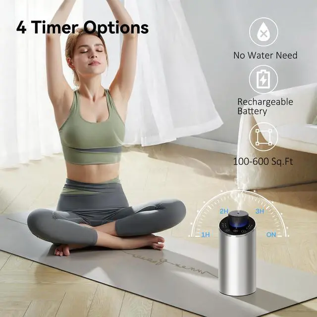 Portable & Smart Touch ControlSmaller than a soda can, this waterless diffuser gives you complete control. Customize mist intervals (10/30/90s) and set auto-off timers (1/2/3H/ON) for any space. Precise settings prevent oil waste, saving you money, while the tip-over sensor automatically shuts it off to prevent leaks