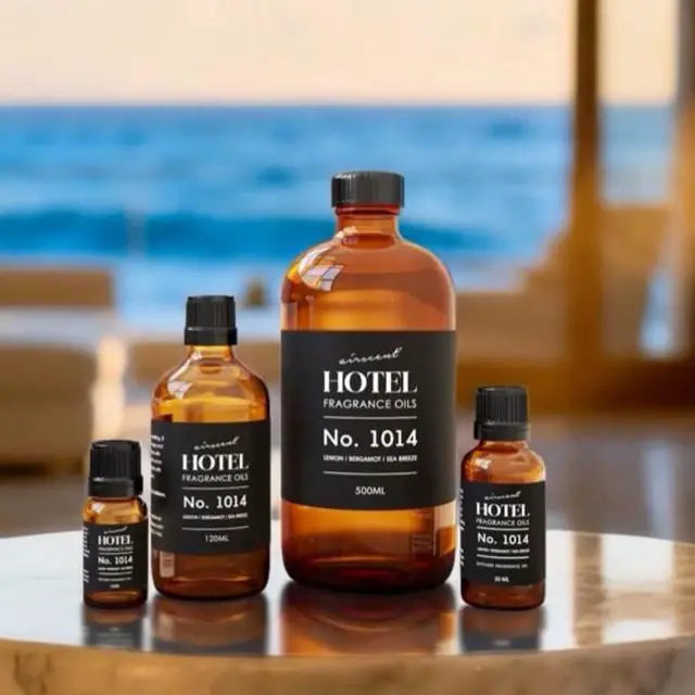 Crafted for the discerning fragrance aficionado and available in 10, 30, 120 and 500 milliliter sizes, this versatile fragrance combines key notes of lemon bergamot and sea breeze to create an ambiance of ritzy coastal sophistication. Indulge in seaside luxury with this signature 5-star hotel scent.