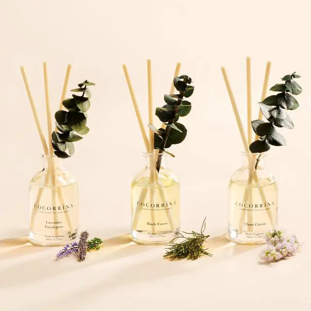 | Eucalyptus & Moss | Clean Cotton | Fig Blossom | Cashmere Vanilla | Ocean Breeze | Gardenia | Moroccan Amber |