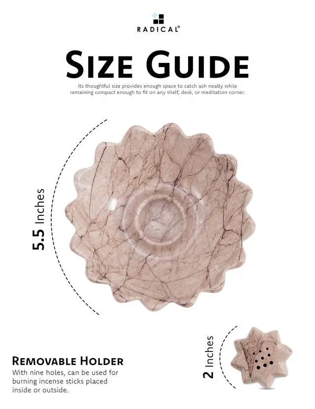 - Incense Bowl: D - 5.5" Inches, Incense Holder - D - 2" Inches, H - 1.8" Inches.