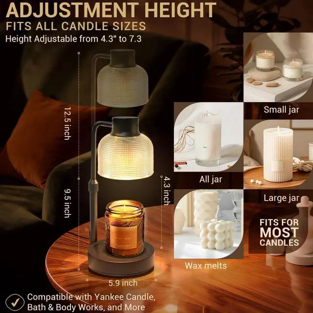 | Additional Features | 24-hour timing cycle, Dimmable, Adjustable Height, Timer, candle warmer lamp with timer and auto shut off |
