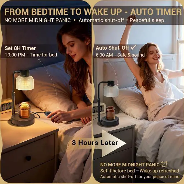 Our candle warmer lamp melts aroma candles in a cleaner, more efficient and long-lasting way. It melts the scented wax inside the candle jar by heat released from a heating effect. Natural release of fragrance within minutes. No flames, no soot, no indoor pollution, reducing the risk of fires caused by igniting candles. With elegant design and soft warm glow, the candle warmer lamp is a room decoration. Definitely an aesthetic home decor for living room, bedroom, kitchen, office,etc. Ideal gift to show your love to your lover, wife, mom, families and friends on Christmas Day, Birthday Day, Mother's Day, Father's Day, Thanksgiving, New Year, Housewarming, Anniversary Day. This candle wax warmer with sleek metal body and vintage glass lampshade complement any home decor style, creating a cozy atmosphere in the bedroom or adding elegance to the living room. The Wax Melt Warmer for scented jar candle serves as delicate and functional decorative for living room decor aesthetic, bedroom, dorm room decor, studies, offices, yoga rooms, kitchens, and more. Apartment must have.