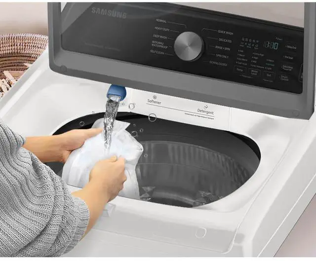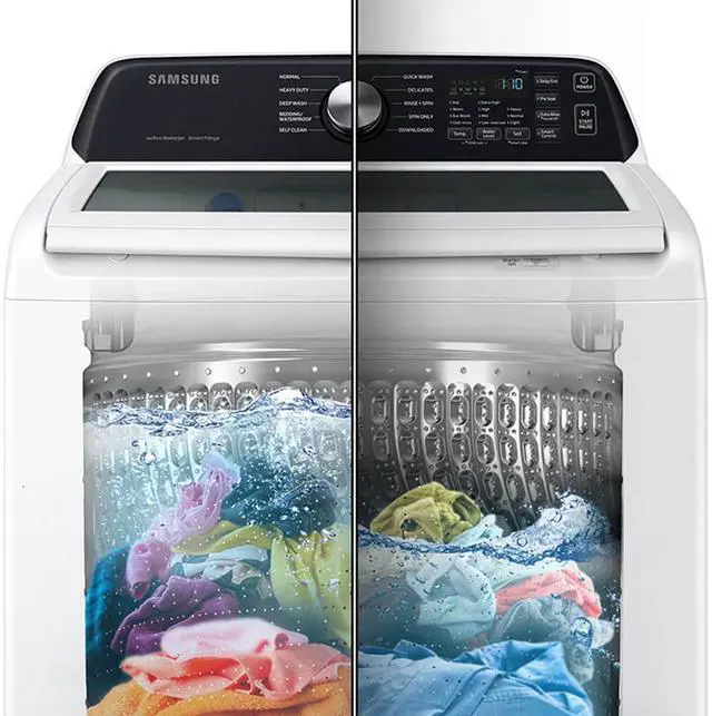 Samsung's 4.7 cu. ft. Large Capacity Top Load Washing Machine with Wi-Fi connectivity lets you receive end-of-cycle alerts and schedule laundry right from your smartphone. * With Active WaterJet, a built-in water faucet, you can easily pretreat heavily soiled and stained clothes. Wash More Items in a Single Load