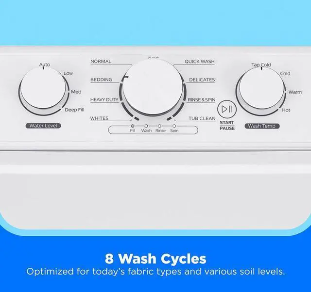Midea's 3.9 cu. ft. Top Load Washer offers advanced cleaning performance in a slim design, making it perfect for smaller laundry rooms. Its Power Wave 360 Agitator uses a multi directional water flow to remove even the toughest stains, ensuring perfectly clean results. Load Sensing