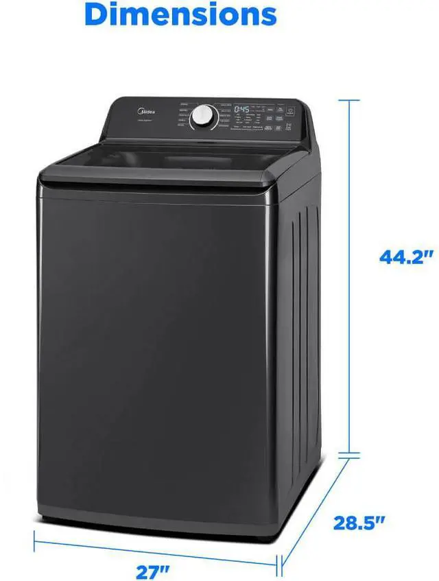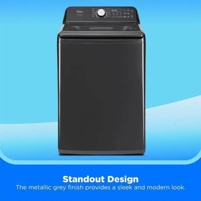 Midea's 4.4 cu. ft. Top Load Washer delivers exceptional cleaning performance and capacity in a standout design, combining a metallic grey finish, a soft-close glass lid, and contoured edges for a clean, modern look Larger Capacity