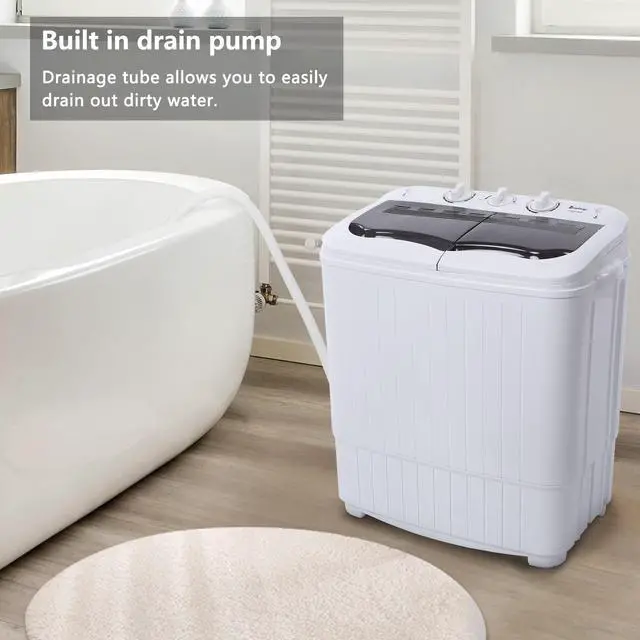 Package Includes: 1 x Washing Machine with Built-in Drain Pump 1 x Water Inlet (You can find it in the washing tub) 1 x
