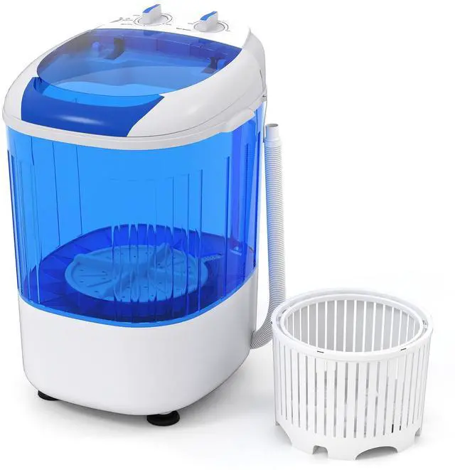 Transform your laundry day with our 2-in-1 space-saving mini washing machine! Ideal for cramped spaces in apartments, RVs, or dorms, this sleek, portable unit not only saves space but also tackles your laundry efficiently. It holds up to 5.5 lbs of clothing versatile use for T-shirts, socks, towels. Plus, with its semi-automatic system, the combo washer allows you to twist a knob to switch between washing and spin drying. It's quick, with washing times up to 15 minutes and spin drying in just 6! The see-through design lets you peek at your clothes' progress, and it operates quietly with a powerful 170W motor. Make your laundry routine effortless with this stylish, effective, and easy-to-use washing powerhouse!