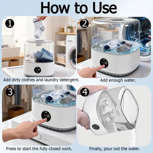 - Extremely Easy to Use & Maintain: Just add clothes, detergent, and water, then select your mode. When finished, simply drain the water and rinse the tub. It's that easy. No complex setup or installation required.