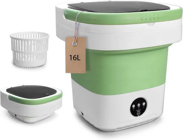 Portable Washing Machine, 16L Upgraded with Spin Basket Laundry Machine, 3 Modes Deep Cleaning, Upgraded Small Collapsible Laundry for Hotel, Apartment, Home and Travel - Green