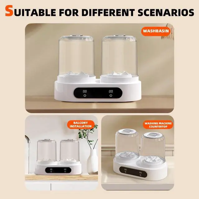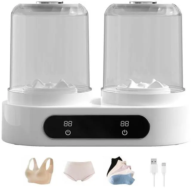 Underwear Washer, Mini Washing Machine 2L Portable Washer with Digital Timer Display for Socks, Saliva towels, Suitable for Apartments, Hotels, Travel and Gift (Double cup)