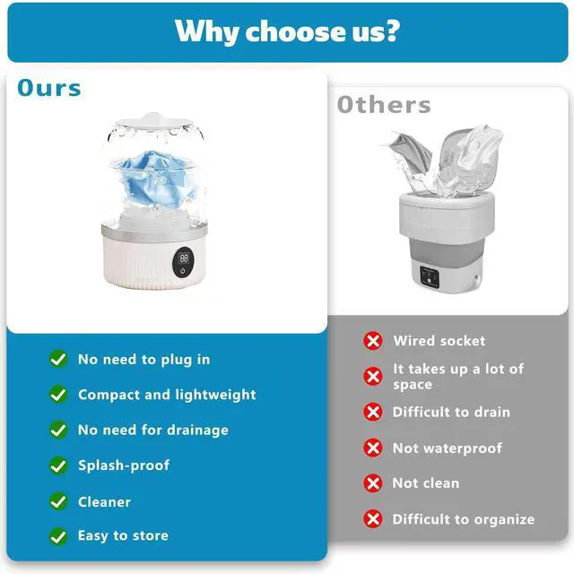 Our washing machine is equipped with an LED screen. Press and hold for two seconds to start it. It can be placed in the bathroom for use. It is waterproof, can store electricity and is wireless, making it more convenient to use