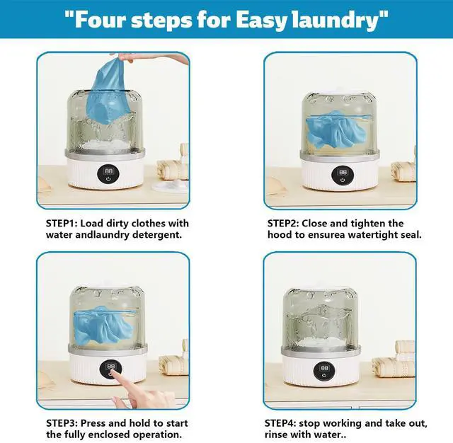 Long press for 3 seconds to activate the daily laundry mode: available in both 5-minute and 10-minute modes, with a timing function Product dimensions: 8.08 * 4.92 * 4.92 inches