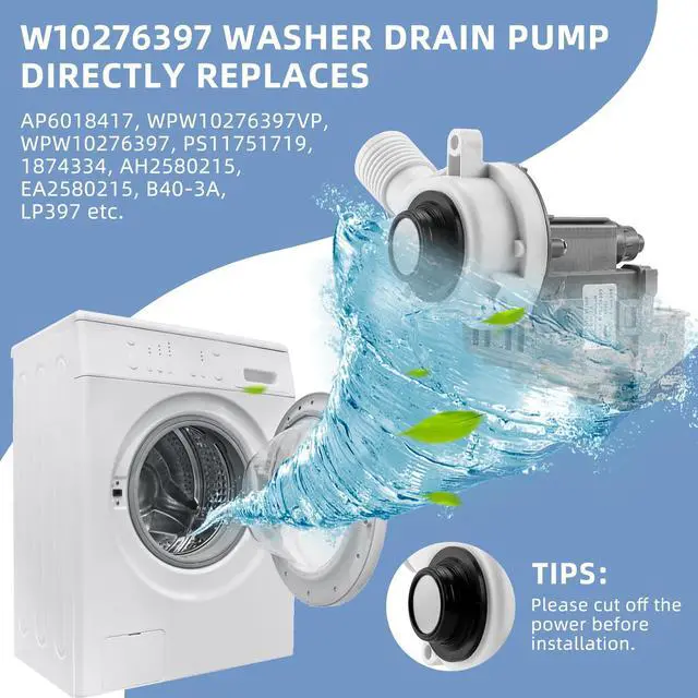 Upgraded W10276397 washer drain pump is made of high-strength plastic and metal