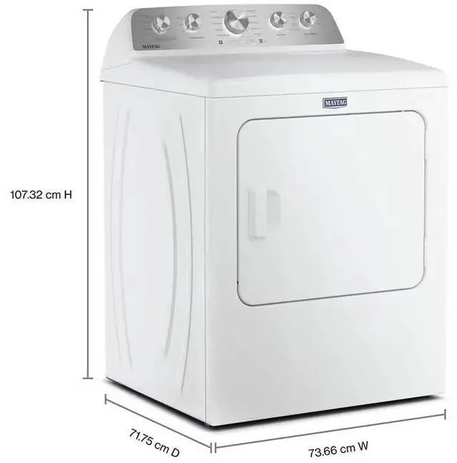 7.0 Cu. Ft. Capacity Offers ample space to dry large loads and bulky items with ease, reducing the number of cycles needed. 10 Dryer Cycles Provides a wide range of drying options to handle everyday loads, specialty fabrics, and heavier items. 3 Temperature Settings Allows precise heat control to help protect clothes while ensuring effective, consistent drying. Pet Pro Option Helps remove pet hair from clothes using enhanced airflow and tumbling action, making it ideal for pet-friendly homes. Moisture Sensing Two sensors closely monitor moisture levels and air temperatures, automatically stopping the cycle when clothes are evenly dry to help prevent over- or under-drying.