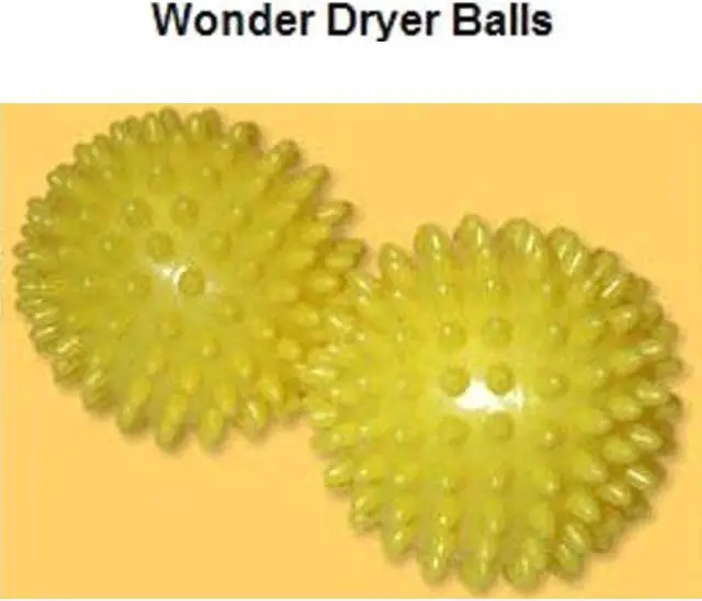 WONDER DRYER BALLS: a natural, energy-saving solution for your clothes dryer. These innovative balls reduce drying time, minimize wrinkles, and eliminate static cling on natural fiber fabrics. They soften laundry, remove lint particles effectively, and are safe for children and pets as they are non-toxic and hypoallergenic. Engineered for durability, they ensure colorfastness on all fabrics and come fragrance-free. Simply use both balls in your dryer with each load to benefit from faster drying and naturally softened clothes. For wrinkle-free garments, use them as an ironing alternative by placing clean, dry items in the dryer on high heat for 10 minutes. Upgrade your laundry routine with "WONDER DRYER BALLS" for efficient, eco-friendly results every time