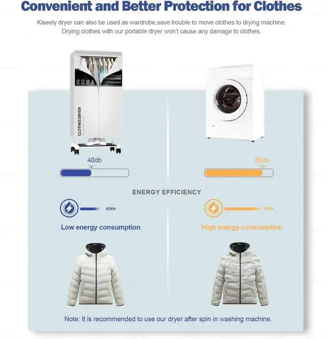 Kiseely dryer can dry your clothes real fast, with its timer function you can dry clothes without worry