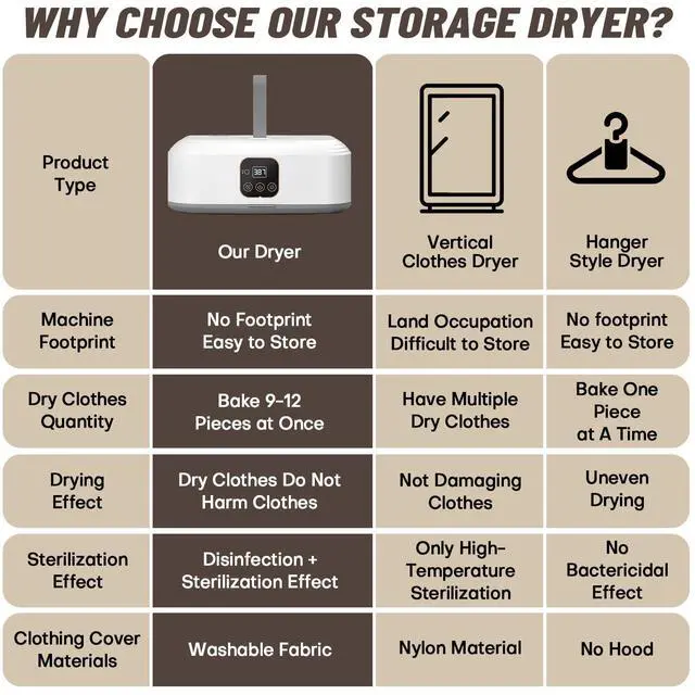 Dual-layer dryer offers large capacity, fast drying with even heat distribution, and a space-saving foldable design. Perfect for homes.