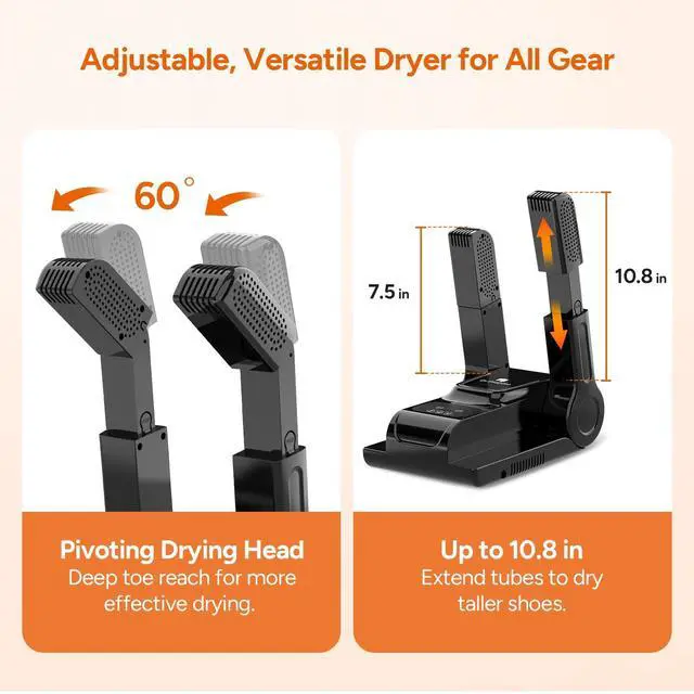 · Reaches deeper into the shoes for a more powerful drying effect.