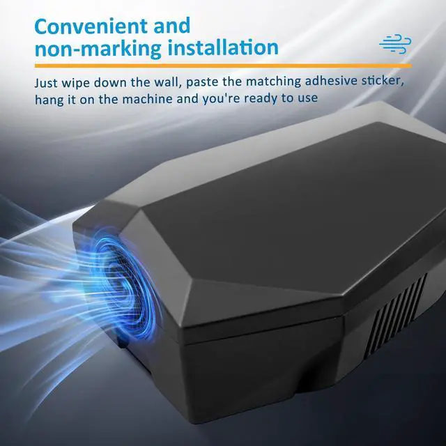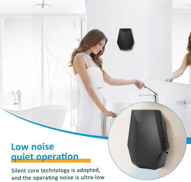 Description : This hand dryer is equipped with a high power motor and high wind speed for efficient and quick drying . It adopts mute technology , making it suitable for quiet required environments such as next to bedrooms and hospital wards . It is fitted with precise infrared sensors , releasing air as soon as hands are placed under it . No drilling is needed , installation is traceless with the included adhesive stickers , allowing flexible placement in scenarios like rental homes and hotels
