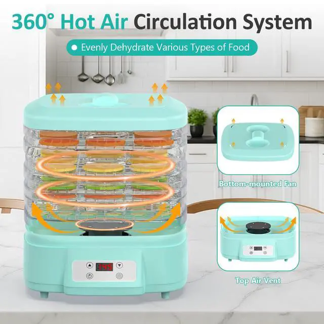 Smart LED Control & Real-Time Monitoring: Program precise drying via the intuitive touchscreen, with clear LED displays for temperature/time tracking. The see-through window + 360° airflow ensures even results for jerky, veggies, or pet treats.