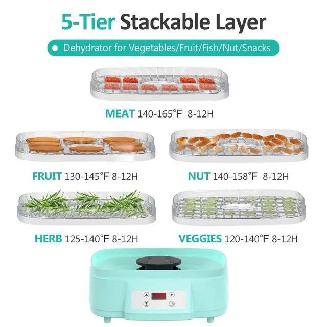 Food Dehydrator Machine - 5 Trays Dehydrator with Digital Adjustable Timer & Temperature Control, 200W Electric Dryer for Food and Jerky, Fruit, Dog Treats, Herbs, Snacks