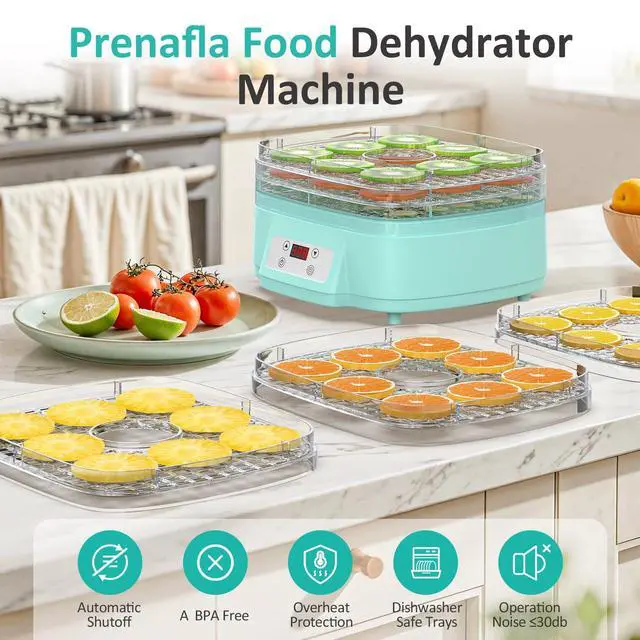 Powerful 200W Drying Efficiency: Prenafla food dehydrator boasts a robust 200W system that rapidly removes moisture while locking in 97% of natural vitamins and minerals. Perfect for creating nutrient-rich dried fruits, meats, and herbs without sacrificing flavor or texture.