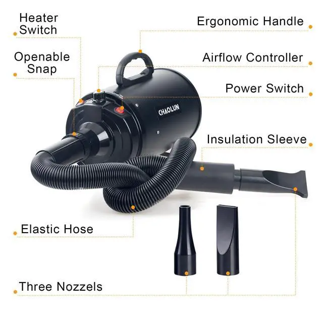 - Quick drying: This dog dryer can help to effectively reduce the time needed to dry pet hair.