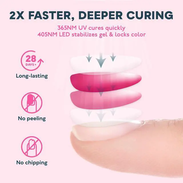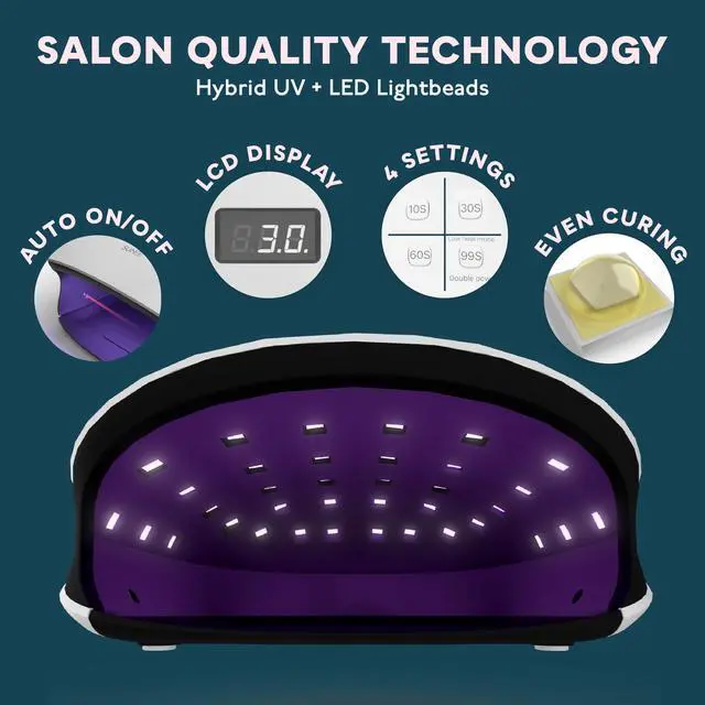 One Lamp, All Gel Polishes: Our Gel Nail UV Light Lamp plays well with every gel polish type, including base coats, top coats, color gels, hard gels, builder gels, acrylics and more. Achieve salon-quality perfection right at home