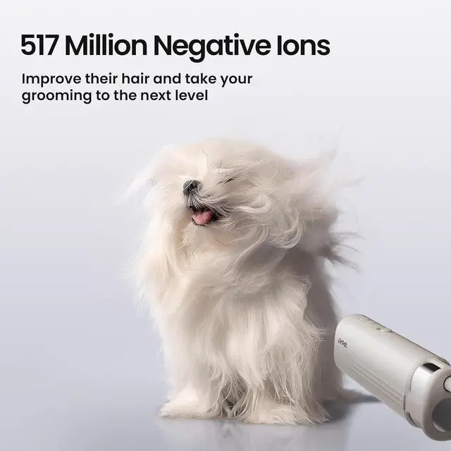 Noise-Sensitive Pet Friendly: Operating noise of 4675 dB helps sound-sensitive pets adapt so they no longer fear drying. The abundant airflow carries 517 million negative ions, blowing over pets like a sea breeze for comfortable drying; while drying quickly it also helps dogs and cats coats become softer, glossier, and healthier