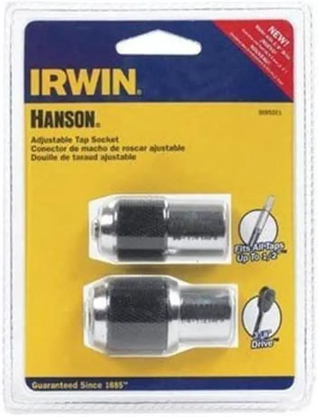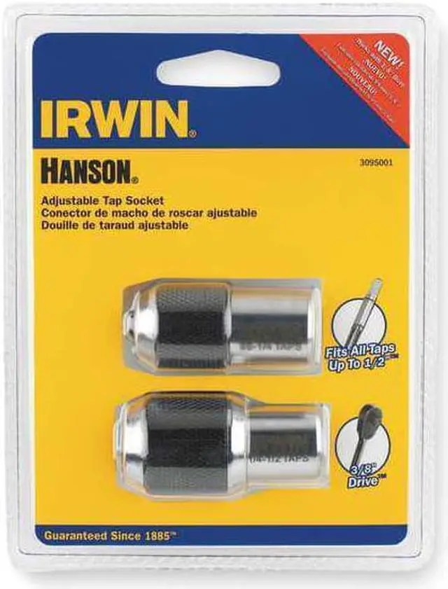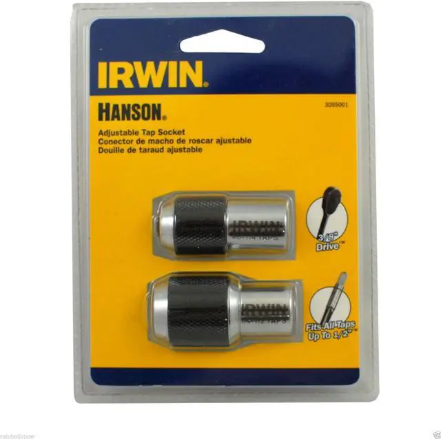 Irwin Adjustable Tap Socket 2 Piece Kit (3095001) Jaws adjust to tightly secure taps to 1/2"Fits all 3/8" square drive wrenchesFor use in tight workspacesDesigned for use with taps, reamers, screw extractors and other tools with a square shank