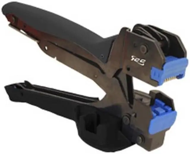 The JackEasy is an all-in-one purpose tool, compatible with ICCs voice and data jacks. The tool terminates all 4-pairs with an even balanced blade that seats, terminates and simultaneously cuts off excess wires in one squeeze. ICCs JackEasy is manufactured with a 16 Gauge steel framework making it the strongest in the industry and built to last. The handle is ergonomically designed with polypropylene for a comfortable grip and allows installers to terminate repeatedly and effortlessly. The JackEasy includes two blades to terminate both easy (EZ) and slim body (HD) style jacks. The tool is also designed with a surface base allowing the tool to rest on a table or floor for support during termination.