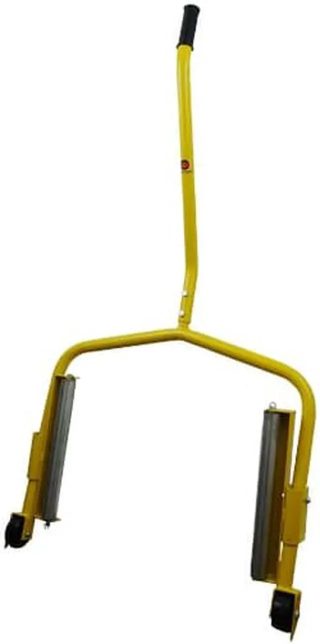 ESCO Heavy duty truck wheel dolly is used for moving around heavy, super single and flotation truck tires. As the wheel is removed, it rolls the tire to a work site, and then rolls it back and rotates the tire on special 14" rollers to align the tire back on the studs.