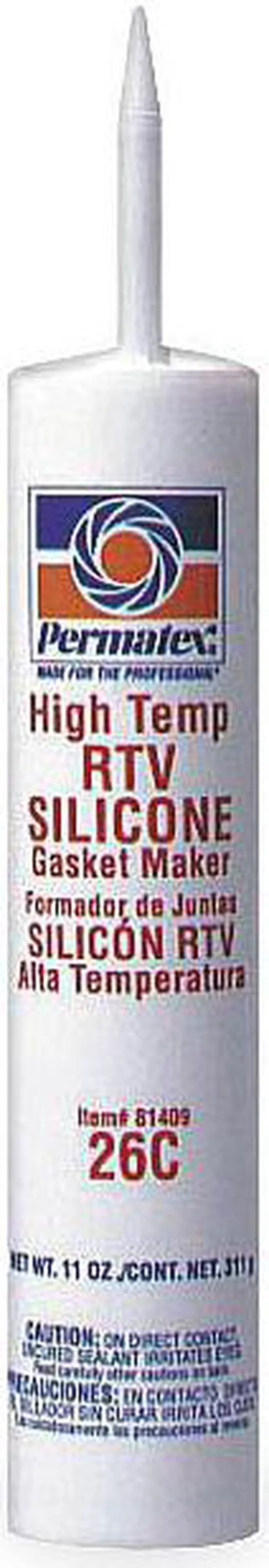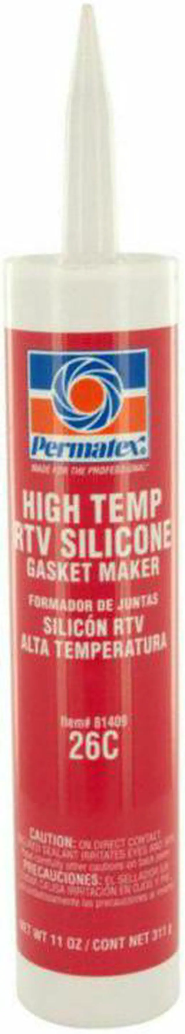 RTV Gasket Maker, Color Red, Container Size 11 oz, Container Type Cartridge, Full Cure Time 1 day, Cure Type Room Temperature, Maximum Gap Fill Size 0.25 in, Maximum Operating Temperature 600 Degrees F, Minimum Operating Temperature -65 Degrees F, Series High-Temp Red RTV, Working Time 2 min, Product Form Paste, For Fluid Type Anti-Freeze Solution, Automotive Fluids, Alcohol, For Material Type Aluminum, Brass, Glass, Iron, Plastic, Steel, Stone, Wood. This item has been restricted from sale in the following state (s): []
