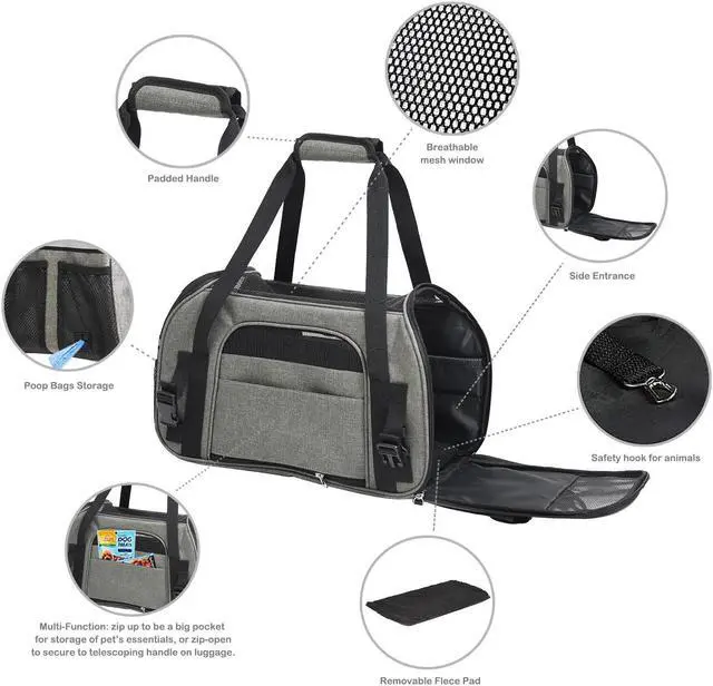 • SUPERIOR DESIGN: Half zip opening on one end, full zip opening on the other end and added mesh panels allow maximum accessibility and ventilation for your pet. This Pet Carrier comes with a removable pad for comfort and easy cleaning.