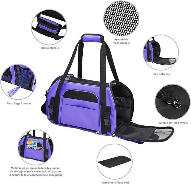 • SUPERIOR DESIGN: Half zip opening on one end, full zip opening on the other end and added mesh panels allow maximum accessibility and ventilation for your pet. This Pet Carrier comes with a removable pad for comfort and easy cleaning.
